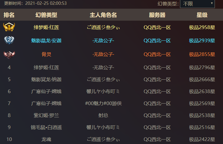下面我们看看本区的幻兽排行榜,看看本区的真实实力!