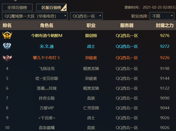 比较可惜的就是没有能够进入封魔百强的玩家!