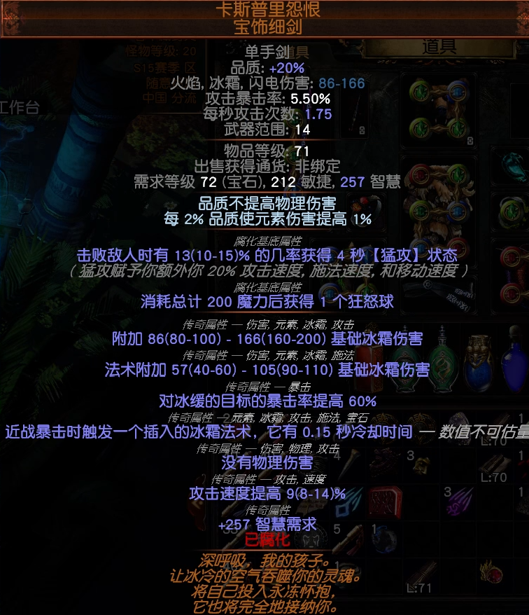 [color=var(--color-text-1)]多重打击(强辅)+ 异常 闪现打击 + 异常 提升暴击几率 + 附加冰霜伤害 + 提高暴击伤害 + 武器元素伤害(强辅)