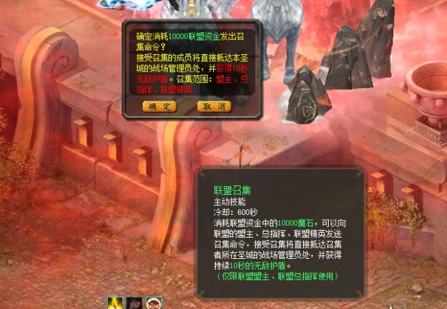 - 3、盟主和总指挥享有“联盟召集”的权限,可将联盟盟主、总指挥、联盟精英发送召集令!调兵谴将转瞬间,兵贵神速战意燃。