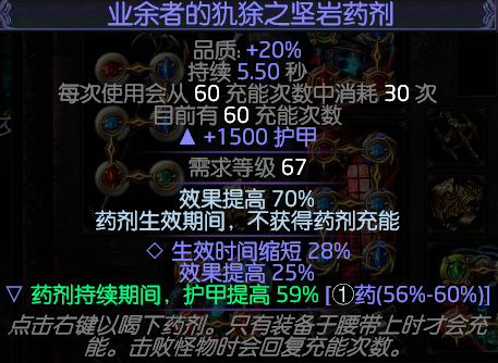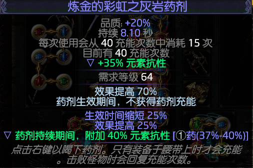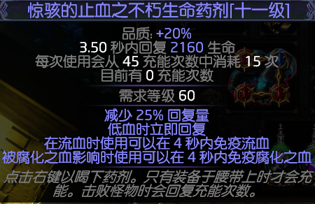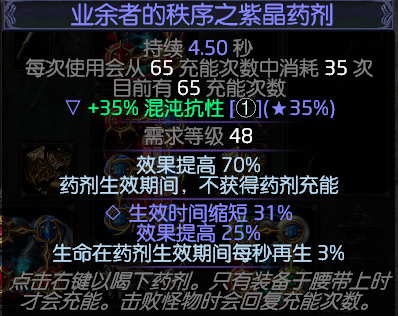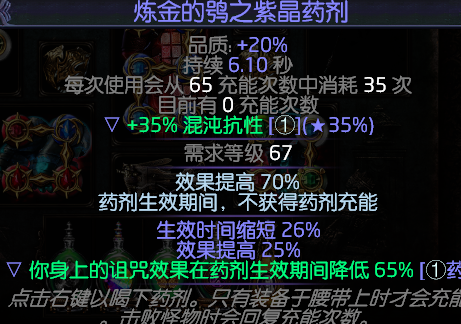 为什么紫晶药剂有两瓶: 一瓶用来免疫诅咒 轻松解决很多复杂词缀地图 除了元素反射必须改动下升华 别的地图基本无视词缀 一瓶用来增加秒回 攻坚才用