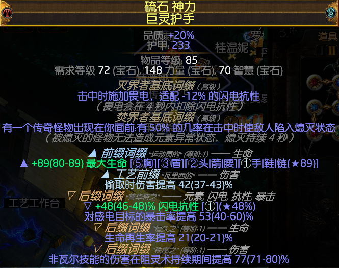 展示的是否为顶配:是 是否绑定:是 是否有可替换暗金:无 低配重点属性顺序:无 需求数量:1 装备思路:元素偷取 最好带有抗性或者属性 缓解抗性压力